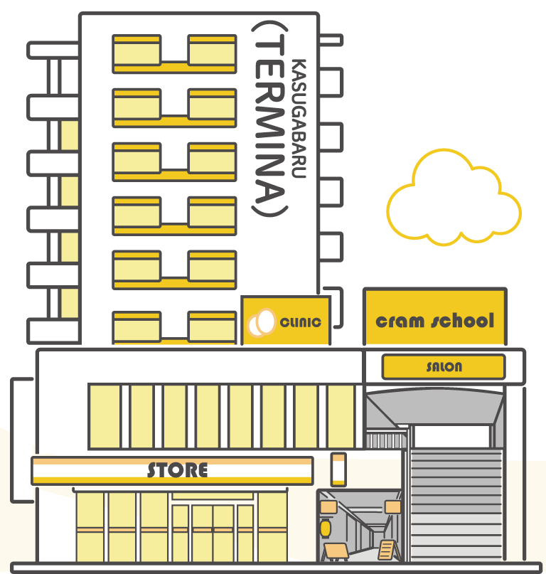 春日原駅前の「テルミナマーケット」は、暮らしに寄り添う多彩な店舗が集まる複合施設です。